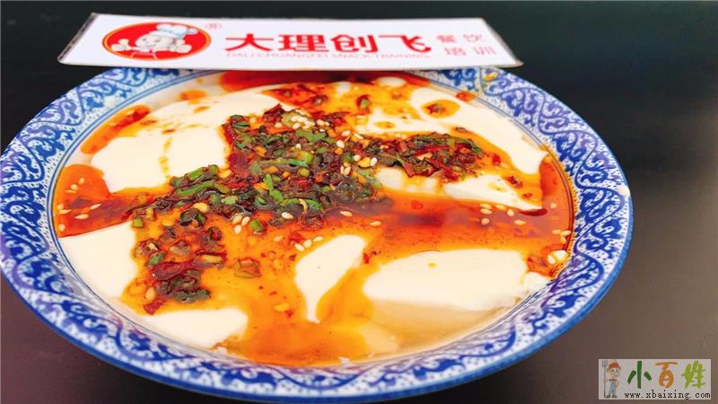 豆腐脑与豆腐是同一家族,但又有一定的区别,即豆腐是凝固体,豆腐脑是半凝固的流汁JgH。豆腐脑的制作工艺是,先将净黄豆磨成豆瓣,去皮后放入清水中浸泡4个小时左右,到豆瓣膨涨成发白时捞出,倒入磨浆机或石磨中磨成细豆浆,用布将细豆浆过滤,将取过豆渣的浆汁倒入铁锅里,用旺火烧开后,倒入专用桶内,再将熟石膏用清水化开,放入瓦缸内,将桶里豆浆趁热倒入,约5分钟,即成豆腐脑。